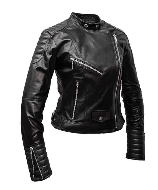 Campera de cuero vacuno legítimo de cierre cruzado. Permite cerrar de forma intermedia visibilizando la solapa o hasta el tope para una presentación de cuello tipo camisa redondo con ajuste de broches. Sus hombreras y mangas se encuentran definidas por una costura en mate lasse.